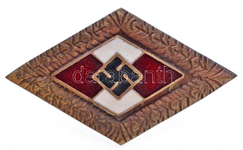Német Harmadik Birodalom ~1933-1945. "Hitlerjugend Aranyjelvény Tölgyfalombokkal" zománcozott fém másolat (21x36mm) T:2