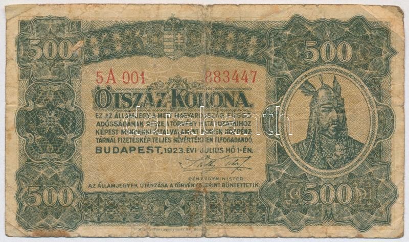 1923. 500K "Magyar Pénzjegynyomda Rt. Budapest" nyomdahely j... https://www.darabanth.com/de/328-Fernauktion/328.0/Numismatik/Ungarische-Banknoten~2500006/1923-500K-Magyar-Penzjegynyomda-Rt-Budapest-nyomdahely-jelolessel-TIII-~II1830590