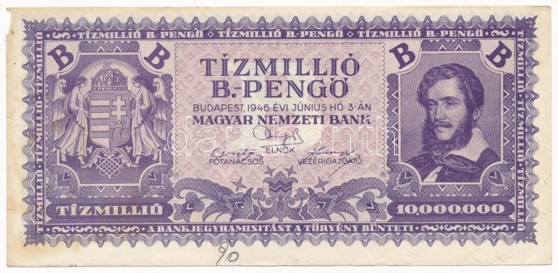 1946. 10.000.000BP T:II saroknál anyaghiány https://www.darabanth.com/de/328-Fernauktion/328.0/Numismatik/Ungarische-Banknoten~2500006/1946-10000000BP-TII-saroknal-anyaghiany~II1827711