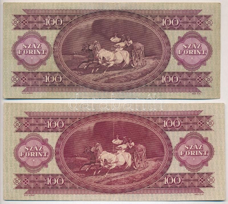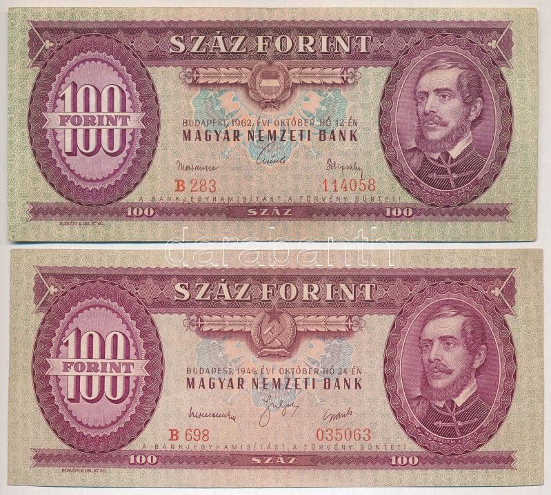 1949. 100Ft + 1962. 100Ft T:III https://www.darabanth.com/de/328-Fernauktion/328.0/Numismatik/Ungarische-Banknoten~2500006/1949-100Ft-plus-1962-100Ft-TIII~II1829167