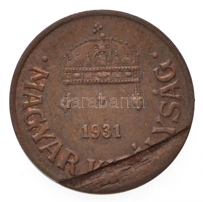 1931. 1f technológiai hibás veret T:2 https://www.darabanth.com/de/328-Fernauktion/328.0/Numismatik/Ungarische-Munzen-und-Munzen-mit-ungarischem-Munzzeichen~2500007/1931-1f-technologiai-hibas-veret-T2~II1829509