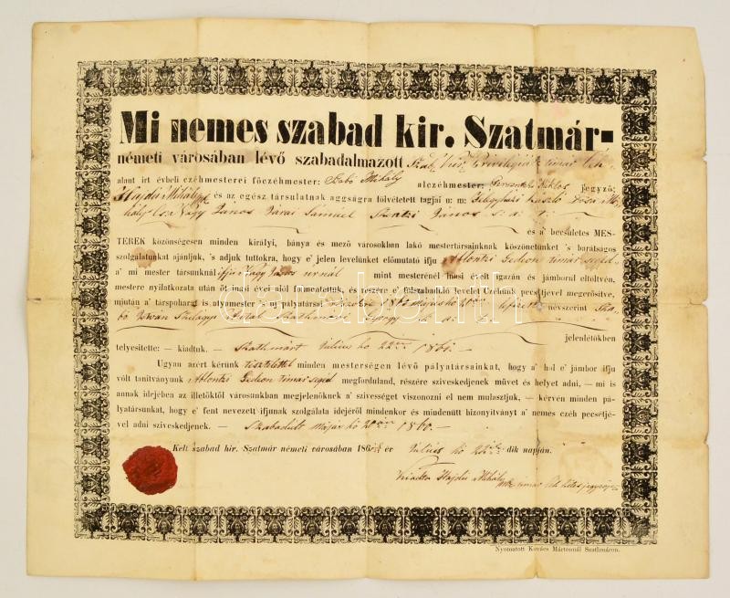 1860 A Szatmárnémeti tímár céh céhlevele 43x35 cm https://www.darabanth.com/de/329-Fernauktion/329.0/Andere-Sammelgebiete/Dokument~500016/1860-A-Szatmarnemeti-timar-ceh-cehlevele-43x35-cm~II1836329
