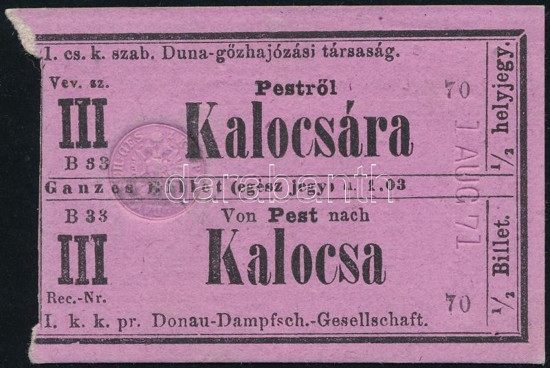 1871 I. cs. k. szab. Duna-gőzhajózási társaság hajó jegye Pestről Kalo... https://www.darabanth.com/de/329-Fernauktion/329.0/Andere-Sammelgebiete/Dokument~500016/1871-I-cs-k-szab-Duna-gozhajozasi-tarsasag-hajo-jegye-Pestrol-Kalocsara-I-k-k-pr-D~II1837477