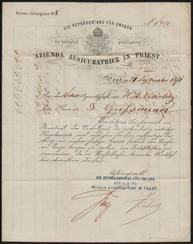 1871 Trieszti biztosító társaság biztosítási kötvénye nyomtatványként ... https://www.darabanth.com/de/329-Fernauktion/329.0/Andere-Sammelgebiete/Dokument~500016/1871-Trieszti-biztosito-tarsasag-biztositasi-kotvenye-nyomtatvanykent-elkuldve~II1838734