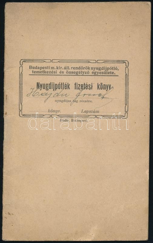 1907-1944 Budapesti m. kir. államrendőrségi okmányok, 3 db: ruha és fegyverzeti könyvecskéje, tömeg-könyvecske, nyugdíjpótlék fizetési könyv, bejegyzésekkel, változó állapotban.