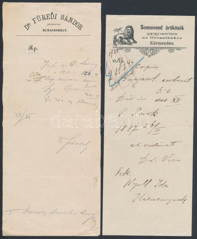 cca 1860-1900 9 db különböző gyógyszertári recept és orvosi rendelvény... https://www.darabanth.com/de/329-Fernauktion/329.0/Andere-Sammelgebiete/Dokument~500016/cca-1860-1900-9-db-kulonbozo-gyogyszertari-recept-es-orvosi-rendelveny-benne-szep-grafika~II1555733