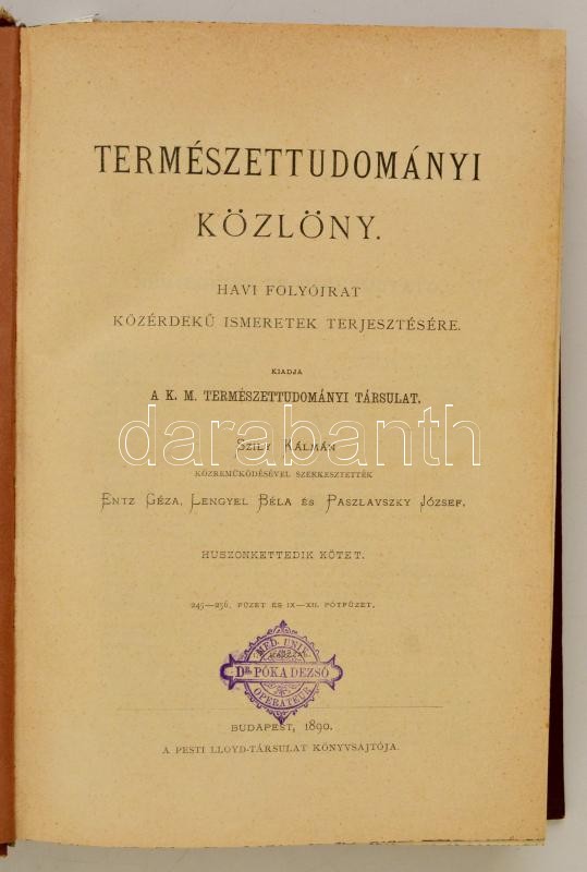 1890 Bp., Természettudományi Közlöny XXII. kötet, 245-256. füzet, kiad... https://www.darabanth.com/de/329-Fernauktion/329.0/Andere-Sammelgebiete/Drucksachen~500029/1890-Bp-Termeszettudomanyi-Kozlony-XXII-kotet-245-256-fuzet-kiadoi-egeszvaszon-kote~II1835452