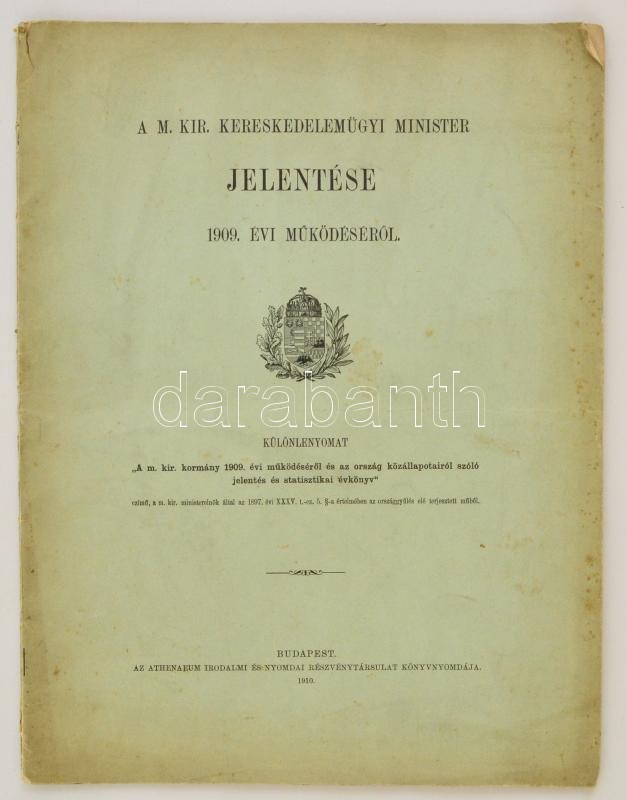 1910 Bp., A M. Kir. Kereskedelemügyi minister jelentése 1909. évi műkö... https://www.darabanth.com/de/329-Fernauktion/329.0/Andere-Sammelgebiete/Drucksachen~500029/1910-Bp-A-M-Kir-Kereskedelemugyi-minister-jelentese-1909-evi-mukodeserol-kulonlenyom~II1781891