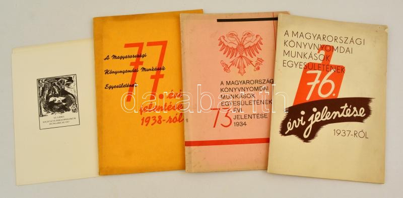 Beschreibung: 1934-1967 Vegyes nyomdászattal kapcsolatos tétel, összesen 5 db; 3 db Magyarországi Könyvnyomdai Munkások Egyesületének jelentése, 2 db Ex Libris