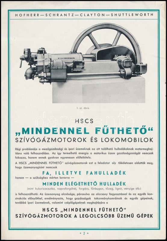 Beschreibung: 1938 Bp., Hofherr-Schrantz-Clayton-Schuttleworth Magyar Gépgyári Művek Rt. "Mindennel fűthető motorok" leírása, 7p
