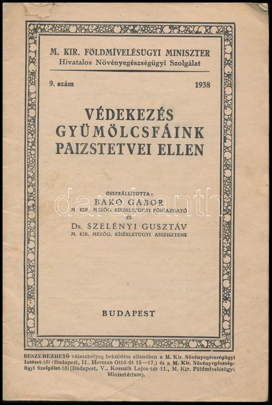 1938 Védekezés gyümölcsfáink pajzstetvei ellen, összeáll. Bakó Gábor, ... https://www.darabanth.com/de/329-Fernauktion/329.0/Andere-Sammelgebiete/Drucksachen~500029/1938-Vedekezes-gyumolcsfaink-pajzstetvei-ellen-osszeall-Bako-Gabor-kiadja-M-Kir-Fold~II1834089