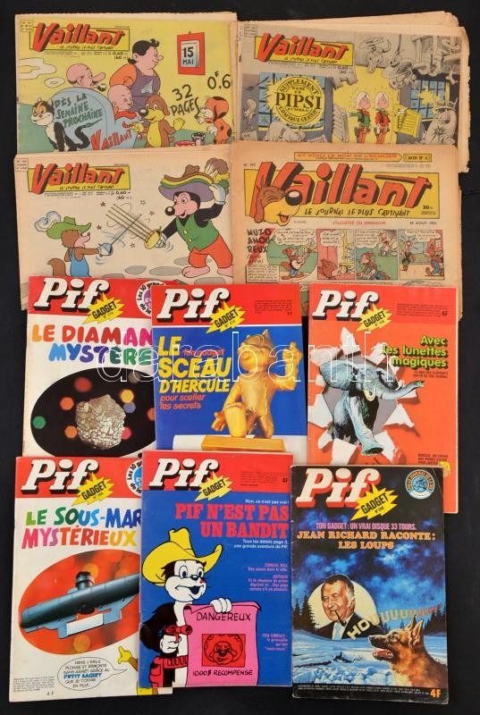 Beschreibung: 1953-1960 Vaillant újság, 4 db, 2 hiányos, 2 hiánytalan + 11 db Pif újság, összesen 15 db