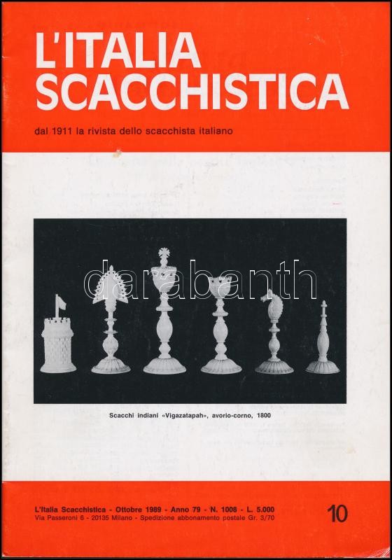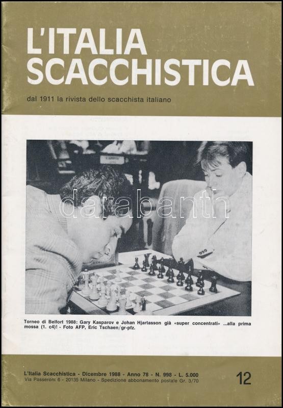 1988-1989 L' Italia Scacchistica 3 száma. Anno 78 N. 997-998., An... https://www.darabanth.com/de/329-Fernauktion/329.0/Andere-Sammelgebiete/Drucksachen~500029/1988-1989-L-Italia-Scacchistica-3-szama-Anno-78-N-997-998-Anno-79-N-1008-Papirkotesben-~II1651787
