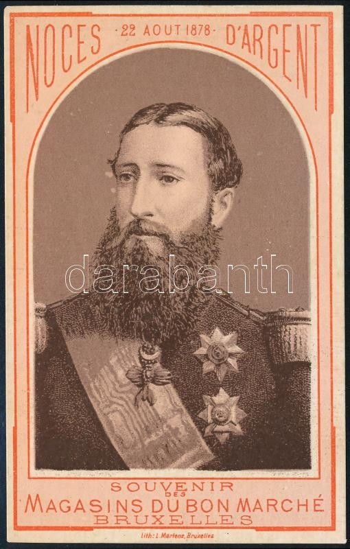 II. Lipót belga királyt ábrázoló litografált reklám címke / Litho adve... https://www.darabanth.com/de/329-Fernauktion/329.0/Andere-Sammelgebiete/Drucksachen~500029/II-Lipot-belga-kiralyt-abrazolo-litografalt-reklam-cimke-Litho-advertising-of-Leopold-II~II1778917