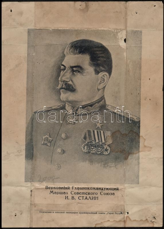 Sztálin portré, nyomat, hajtásnyomokkal https://www.darabanth.com/de/329-Fernauktion/329.0/Andere-Sammelgebiete/Drucksachen~500029/Sztalin-portre-nyomat-hajtasnyomokkal~II1837396