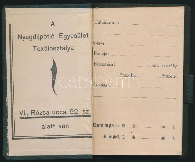 cca 1930-1940 Rendőri igazoltatókönyvecske, kitöltetlen, kissé kopott ... https://www.darabanth.com/de/329-Fernauktion/329.0/Andere-Sammelgebiete/Drucksachen~500029/cca-1930-1940-Rendori-igazoltatokonyvecske-kitoltetlen-kisse-kopott-vaszon-kotesben-jo-C3~II1813621