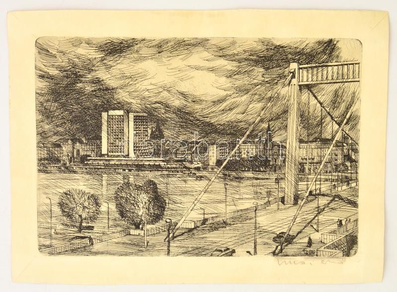 Olvashatatlan jelzéssel: Erzsébet-híd. Rézkarc, papír, 20×29 cm https://www.darabanth.com/de/329-Fernauktion/329.0/Andere-Sammelgebiete/Ex-libris-Kleingrafik~500002/Olvashatatlan-jelzessel-Erzsebet-hid-Rezkarc-papir-20C39729-cm~II1789225