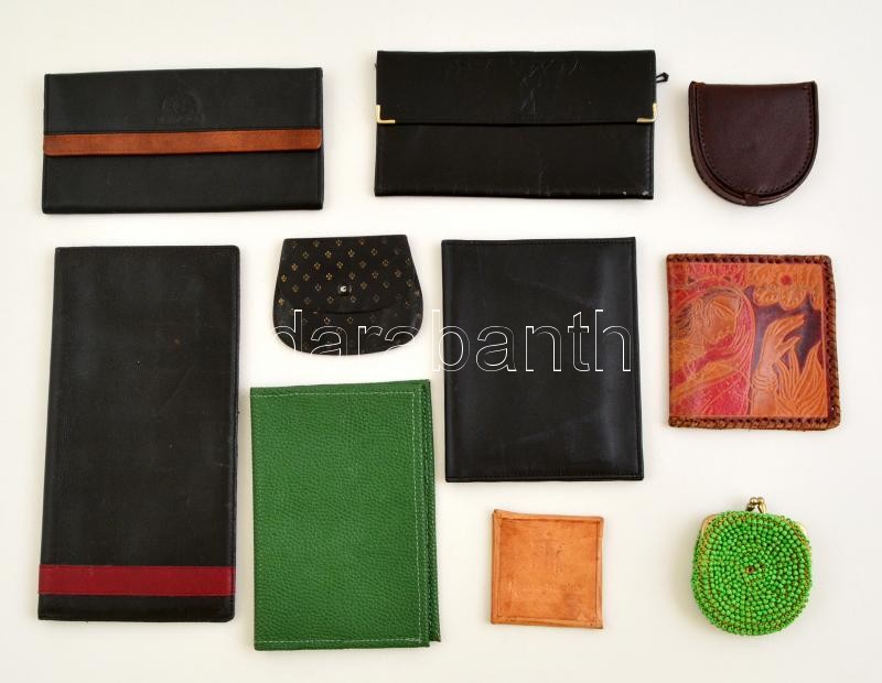 Beschreibung: Bőr pénztárca, levéltárca, mini gyönggyel díszített pénztárca, 8 db