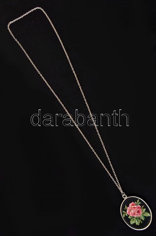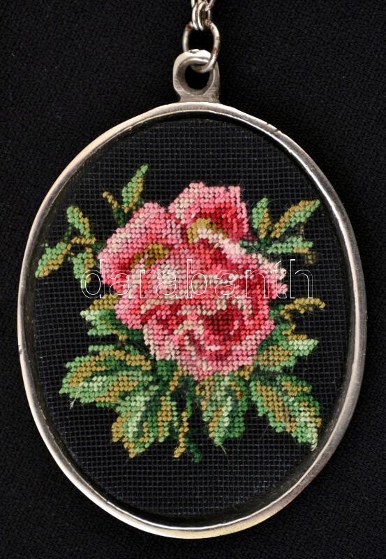 Beschreibung: Gobeli betétes fém medál fém láncon