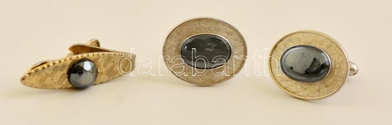 Beschreibung: Mandzsettagomb pár és nyakkendőtű