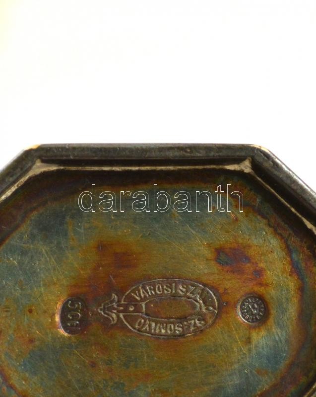 Beschreibung: cca 1900 jelzett 5 cl kis kiöntő, alpakka, Szilágysomlyó városi szálló felirattal az alján, m:5 cm