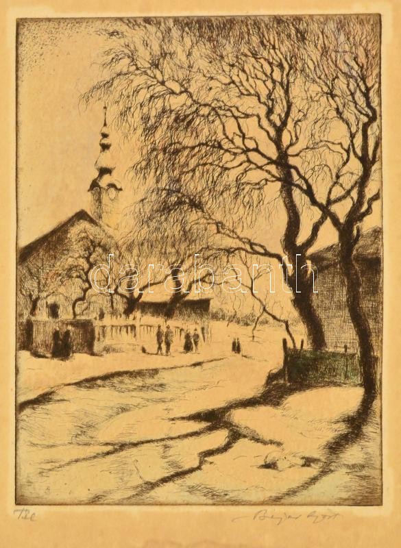 Bajor Ágost (1892-1958): Tél, rézkarc, papír, jelzett, 16×11,5 cm https://www.darabanth.com/de/329-Fernauktion/329.0/Andere-Sammelgebiete/Gemalde-und-Grafiken~500001/Bajor-Agost-1892-1958-Tel-rezkarc-papir-jelzett-16C39711-5-cm~II1806452