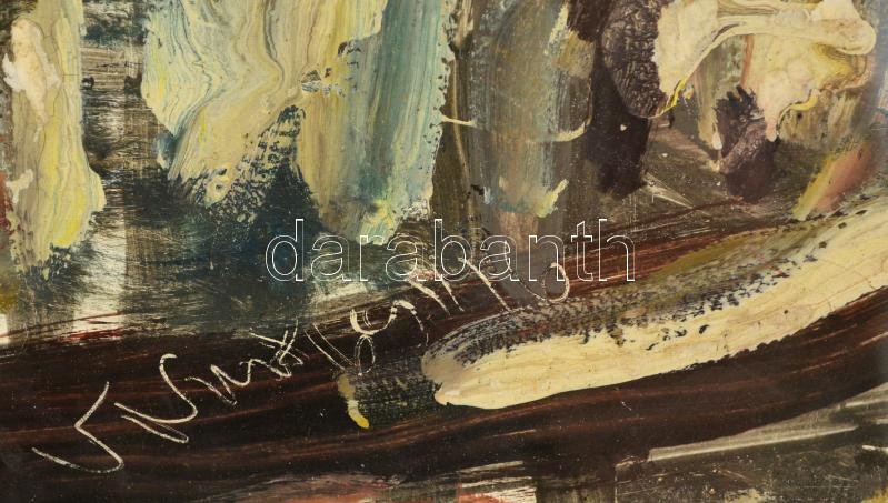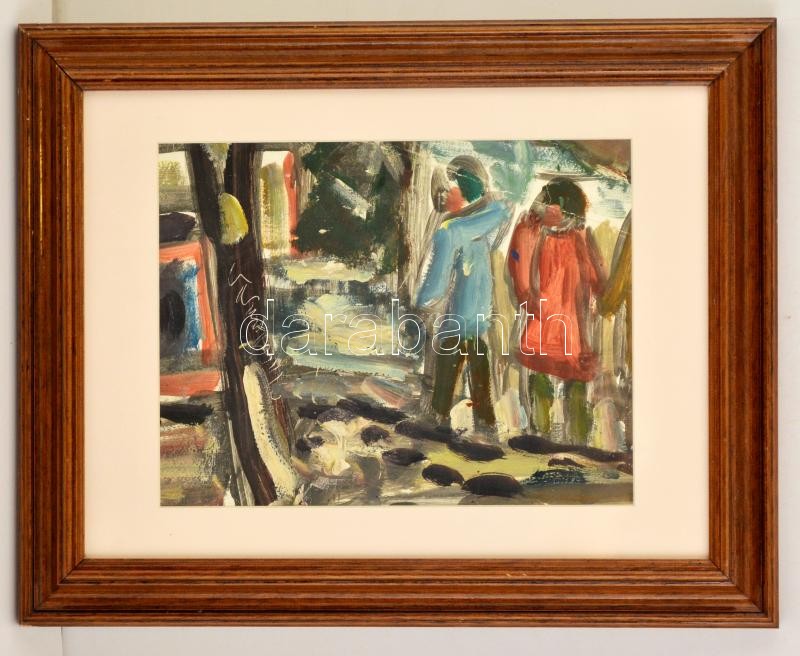 Beschreibung: Cs. Németh Miklós (1934-2012): Alakok, olaj, papír, paszpartuban, üvegezett fa keretben, 23,5×31 cm