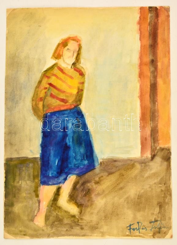 Beschreibung: Farkas jelzéssel: Lány, akvarell, papír, 41,5×30,5 cm