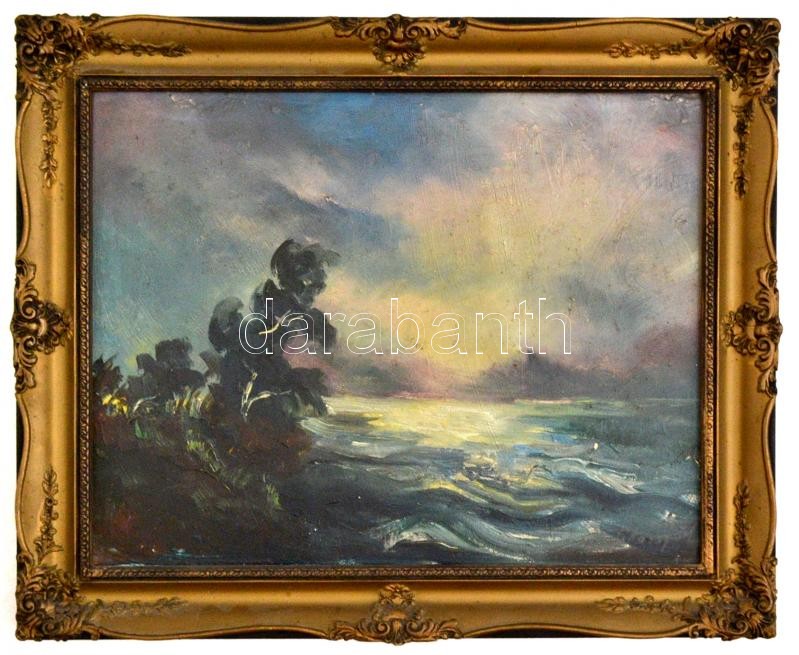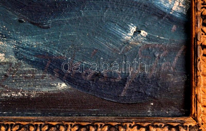 Beschreibung: Matskássy Pál (?-?): Háborgó tenger. Olaj, karton, jelzett, keretben, 28×35 cm