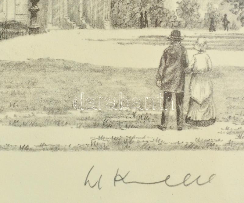 Beschreibung: Olvashatatlan jelzéssel: Bremen Stadttheater am Wall. Litográfia, papír, jelzett, üvegezett keretben, 20×26,5 cm
