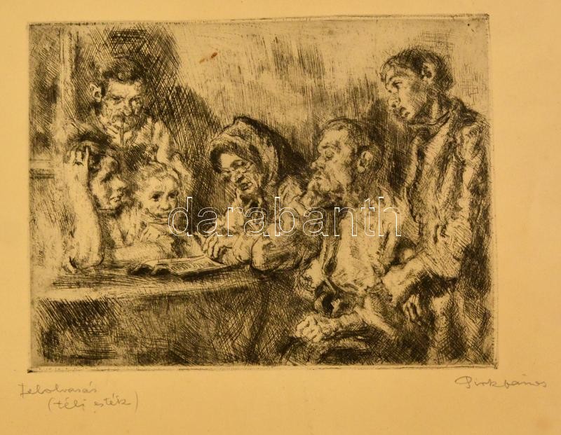 Pirk János (1903-1989) :Felolvasás. Rézkarc, papír, jelzett, 19×25 cm https://www.darabanth.com/de/329-Fernauktion/329.0/Andere-Sammelgebiete/Gemalde-und-Grafiken~500001/Pirk-Janos-1903-1989-Felolvasas-Rezkarc-papir-jelzett-19C39725-cm~II1820082