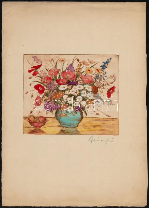 Simon Jenő (?-?): Virágcsendélet. Színezett rézkarc, papír, jelzett, 1... https://www.darabanth.com/de/329-Fernauktion/329.0/Andere-Sammelgebiete/Gemalde-und-Grafiken~500001/Simon-Jeno-Viragcsendelet-Szinezett-rezkarc-papir-jelzett-16x13-cm~II1834050