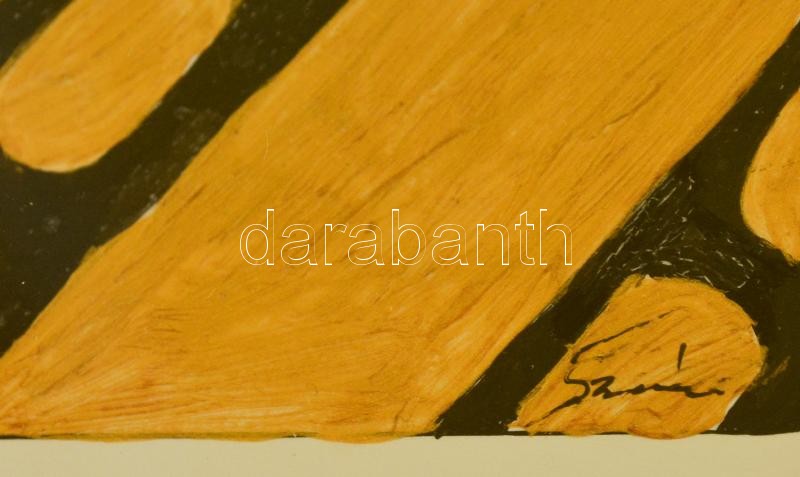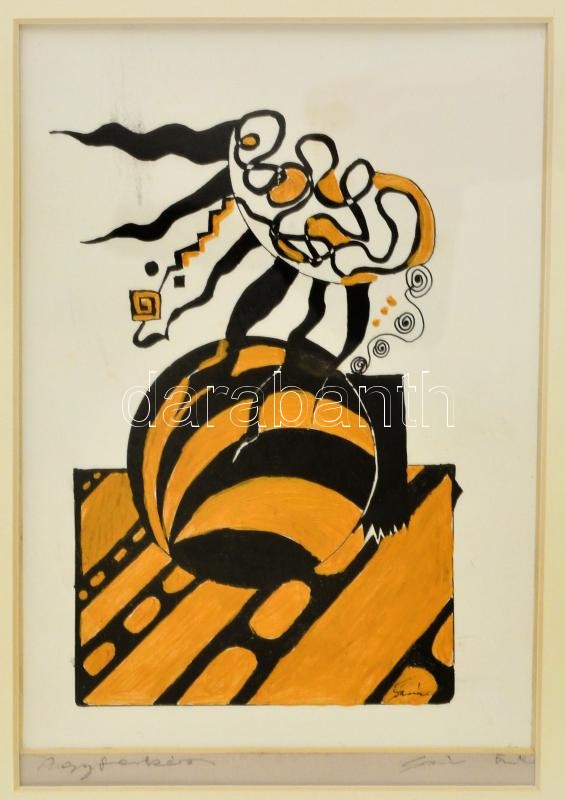 Beschreibung: Szász jelzéssel: Agyfürkész. Vegyes technika, papír, üvegezett keretben, 17×10 cm
