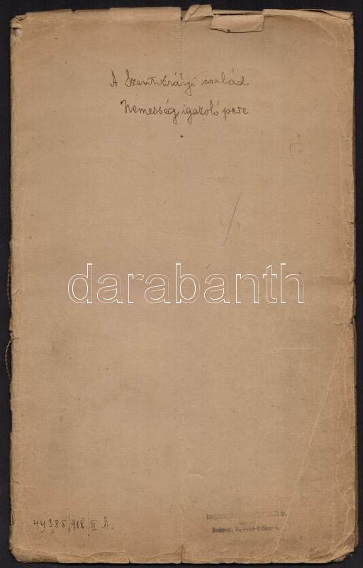 1792 A Szentkirályi család nemességigazoló perének leírása. 34 kézzel beírt oldal latin és magyar nyelven.