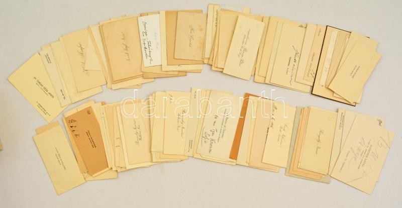 Nagy névjegykártya gyűjtemény, kb. 100 db névjegykártya, néhányon címerekkel, némelyeken bejegyzésekkel.