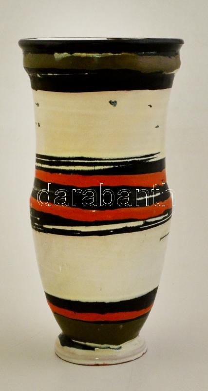 Beschreibung: Iparművészeti Vállalatos Gorka Lívia váza, mázas festett kerámia, jelzett, nagyon apró lepattanással, m:23 cm