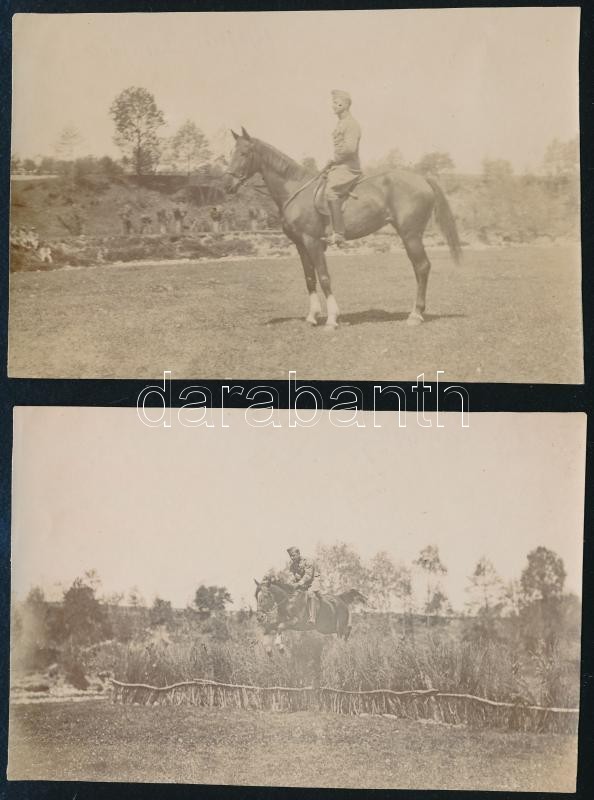 1917 Lovasgyakorlat a harcok szünetében, Várady Albert (1870-?) huszártiszt, később ezredes, a m. kir. varasdi 10. honvéd huszárezred tagjának hagyatékából, 2 db fotó, a hátoldalon feliratozva, 7x10 cmx2