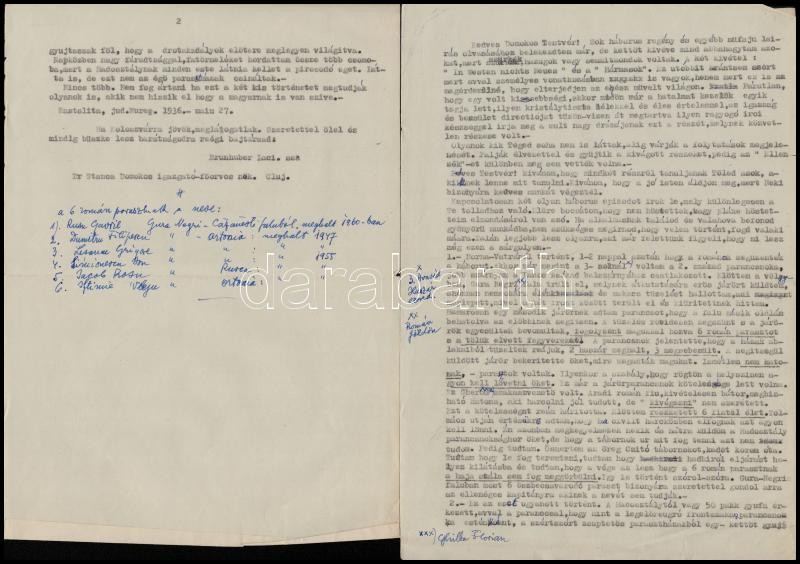 1937 Brunhuber László, a 3. huszárezred századparancsnokának 2 oldalas gépelt visszaemlékezése az I. világháború két eseményére románok elleni harcban, amely megmutatta, hogy a magyar katonának is van szíve