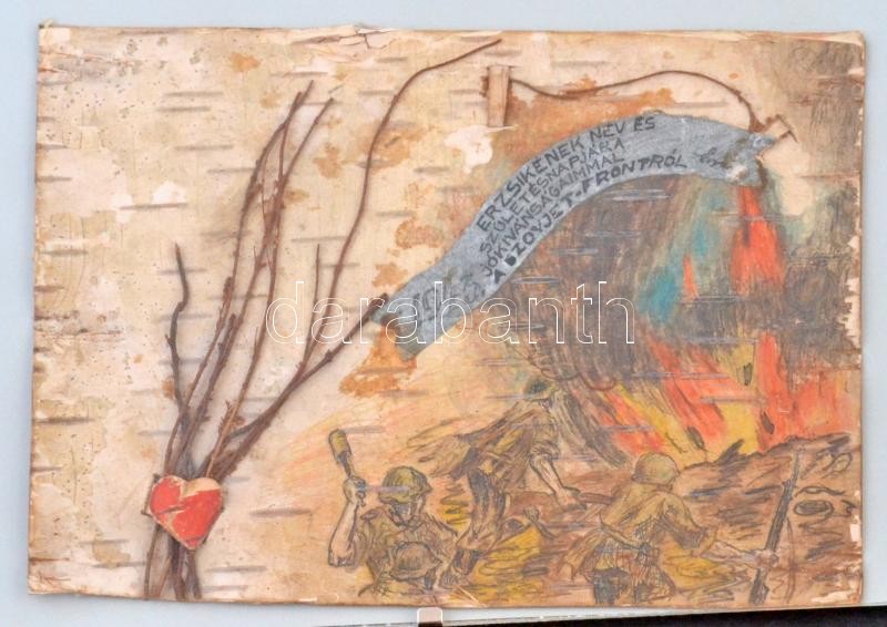 1943 Nyírfakéreg emléklap a szovjet frontról képkeretben https://www.darabanth.com/de/329-Fernauktion/329.0/Andere-Sammelgebiete/Militaria~500027/1943-Nyirfakereg-emleklap-a-szovjet-frontrol-kepkeretben~II1770222