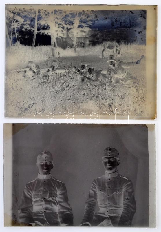 Katonai felvételek: portrék, fegyverek, kitüntetések és gyakorló lőtér, 16 db vintage üveglemez negatív az egri Foto: GRÁF műterem hagyatékából, 9x12 cm