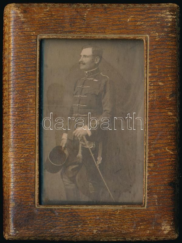 cca 1900 Várady Albert (1870-?) huszár százados, később ezredes, a m. kir. varasdi 10. honvéd huszárezredből, keményhátú fotó, Varasd, Artur Kulćar műterme, picit kopott, picit foltos, 10x6 cm./ cca 1900 Albert Várady hussar captain, later colonel, from the 10th Varazdin Honved Hussars, board photo, Varazdin, Artur Kulćar, little bit worn, little bit spotty, 10x6 cm.