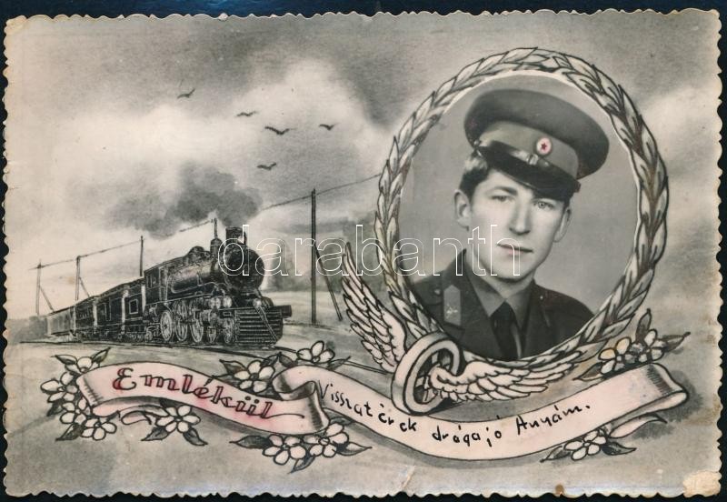 cca 1950 Magyar katona bevonuló emlék fotója, mozdony, 8,5x13 cm https://www.darabanth.com/de/329-Fernauktion/329.0/Andere-Sammelgebiete/Militaria~500027/cca-1950-Magyar-katona-bevonulo-emlek-fotoja-mozdony-8-5x13-cm~II1818139