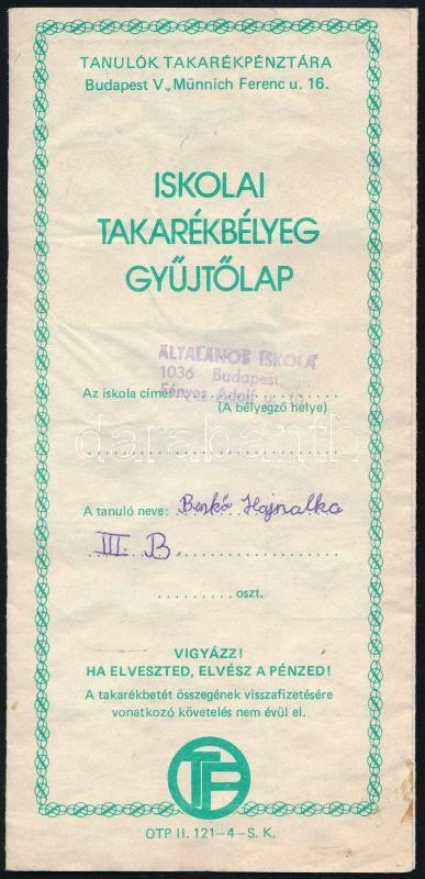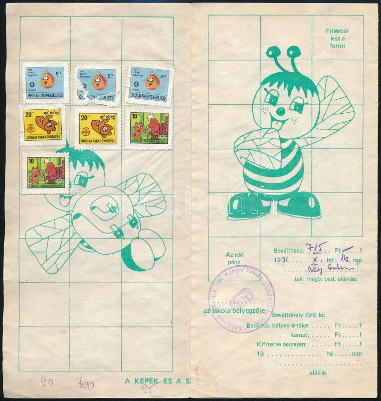 Beschreibung: Iskolai takarékbélyeg füzet 7 db bélyeggel