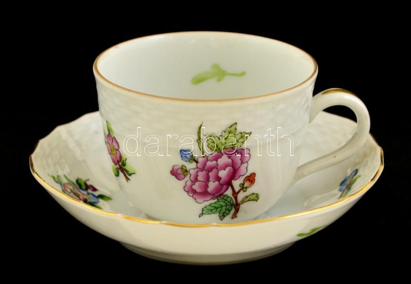 Beschreibung: Herendi Eton mintás porcelán mokkás csésze és alj, kézzel festett, jelzett, hibátlan, csésze: 6,5x4,5 cm, alj: d: 11,5 cm