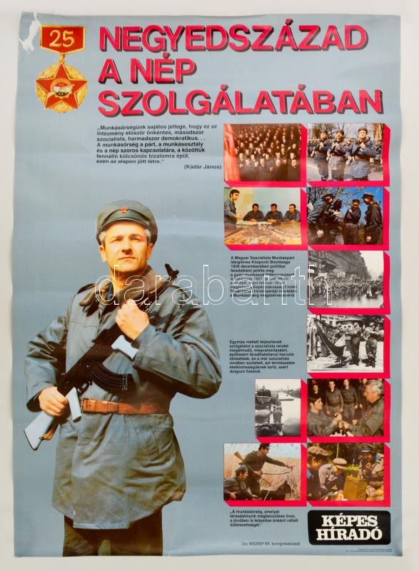 Beschreibung: 1982 "Negyedszázad a nép szolgálatában" Munkásőrség képes propaganda plakát, 96x68 cm