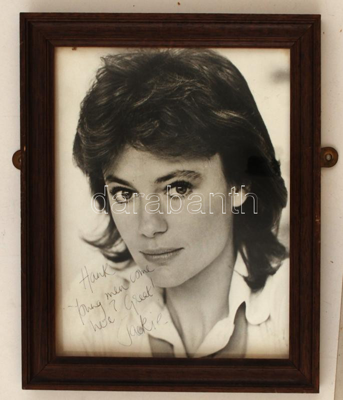 Beschreibung: Jacqueline Bisset (1944-) brit színésznő saját kezű aláírása egy a művésznőt ábrázoló fotón, üvegezett keretben, 25x20cm