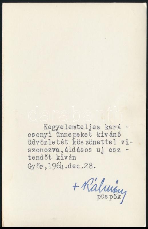 Papp Kálmán (1886-1966) győri megyés püspök saját kézzel aláírt köszön... https://www.darabanth.com/de/329-Fernauktion/329.0/Andere-Sammelgebiete/Signatur~500018/Papp-Kalman-1886-1966-gyori-megyes-puspok-sajat-kezzel-alairt-koszono-lapja-gyori-te~II1807096