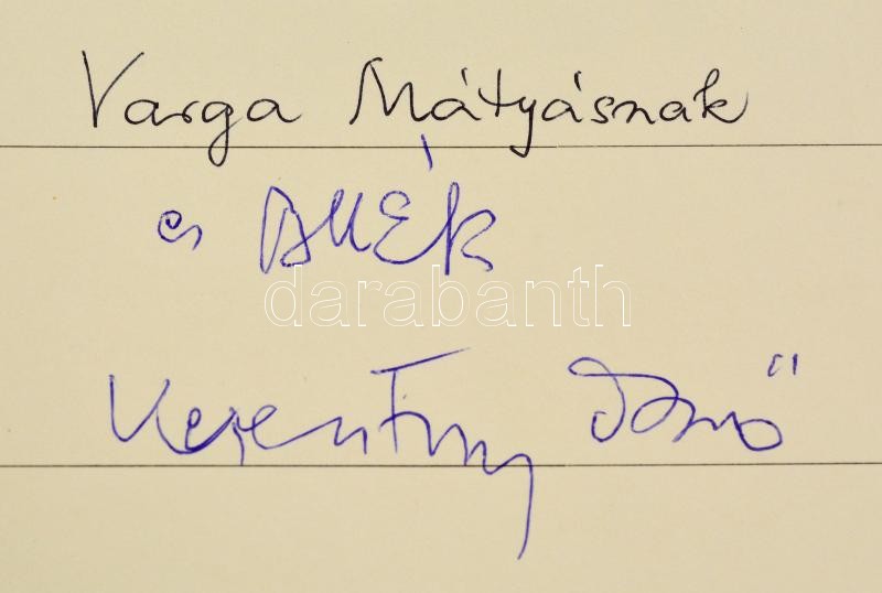 Xantus Gyula, Keresztury Desző aláírásai üdvözlő és emléklapon https://www.darabanth.com/de/329-Fernauktion/329.0/Andere-Sammelgebiete/Signatur~500018/Xantus-Gyula-Keresztury-Deszo-alairasai-udvozlo-es-emleklapon~II1714252