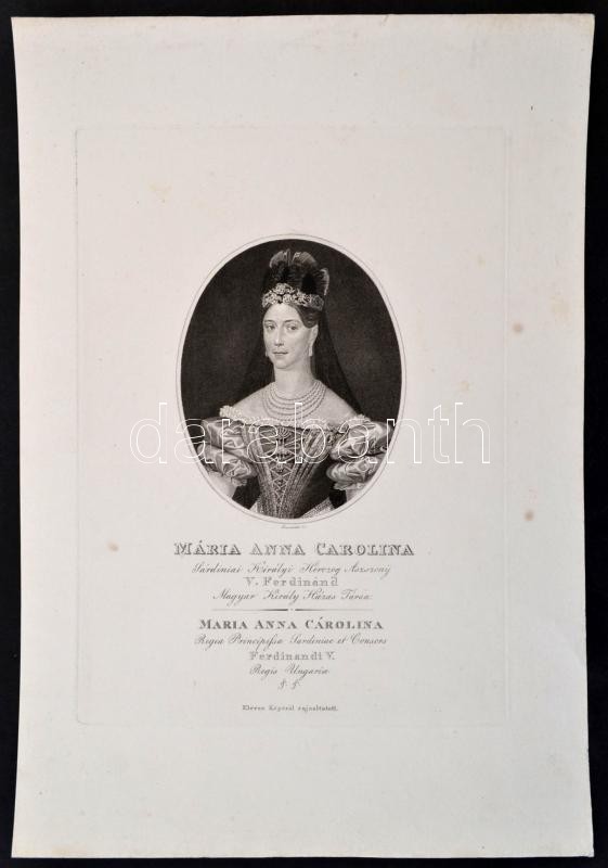 Mária Anna Carolina királyné portréja, rézmetszet, papír, 27×19,5 cm https://www.darabanth.com/de/329-Fernauktion/329.0/Andere-Sammelgebiete/Stich~500003/Maria-Anna-Carolina-kiralyne-portreja-rezmetszet-papir-27C39719-5-cm~II1775820