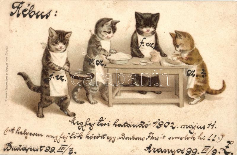 1899 Cats cooking, Wezel & Naumann Serie 28. No. 3. litho (EK) https://www.darabanth.com/de/329-Fernauktion/329.0/Ansichtskarten/Katzen~2000034/1899-Cats-cooking-Wezel-Naumann-Serie-28-No-3-litho-EK~II1837170